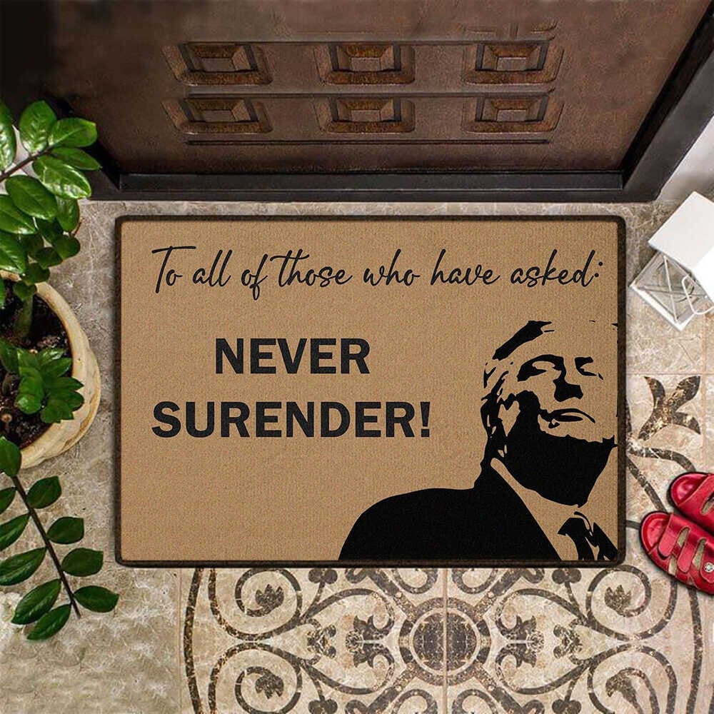 Trump Mugshot Doormat Never Surrender Trump Merch MAGA 2024 Door Mat Gifts For Republicans